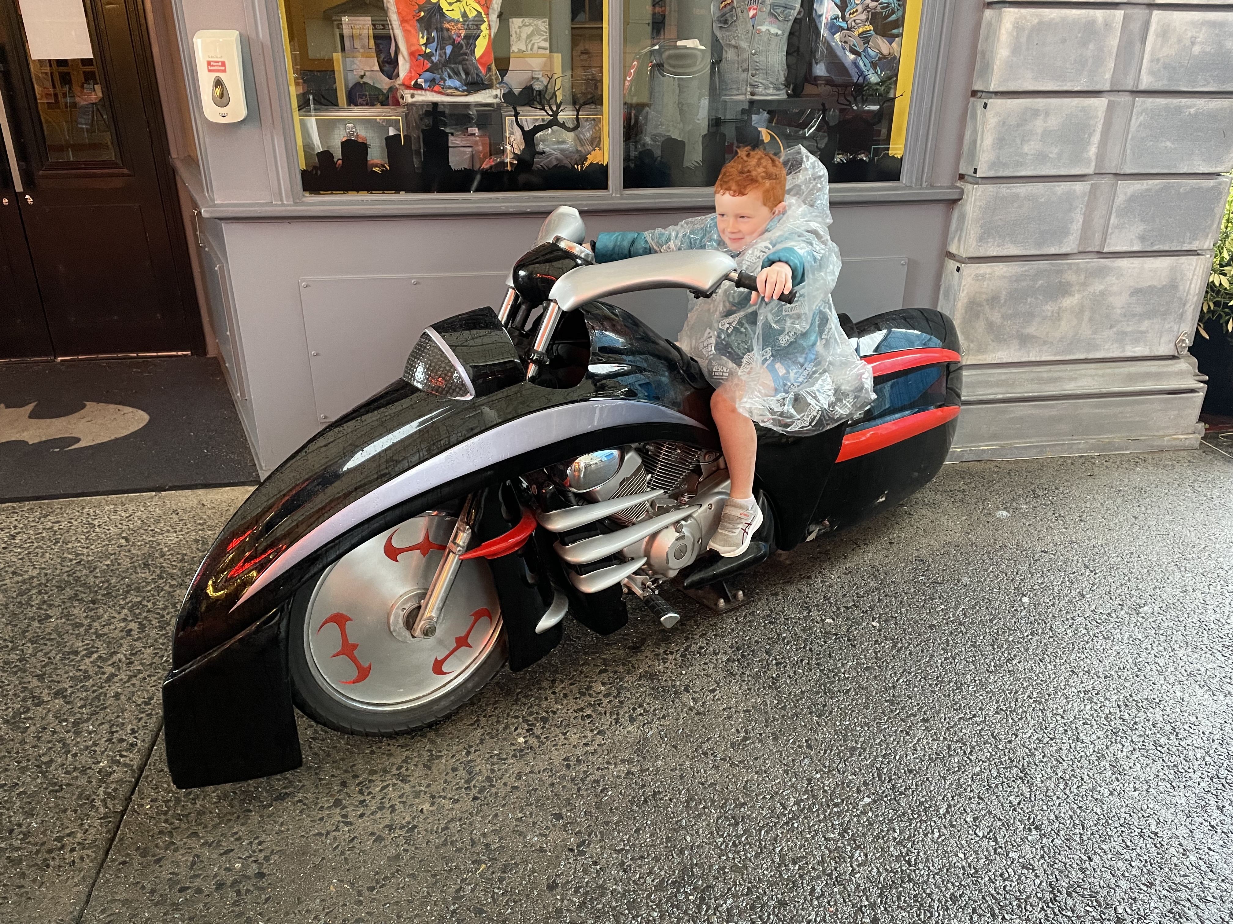 So braving the rain we drove out to MovieWorld, thinking if we got one ride in that would be a win.