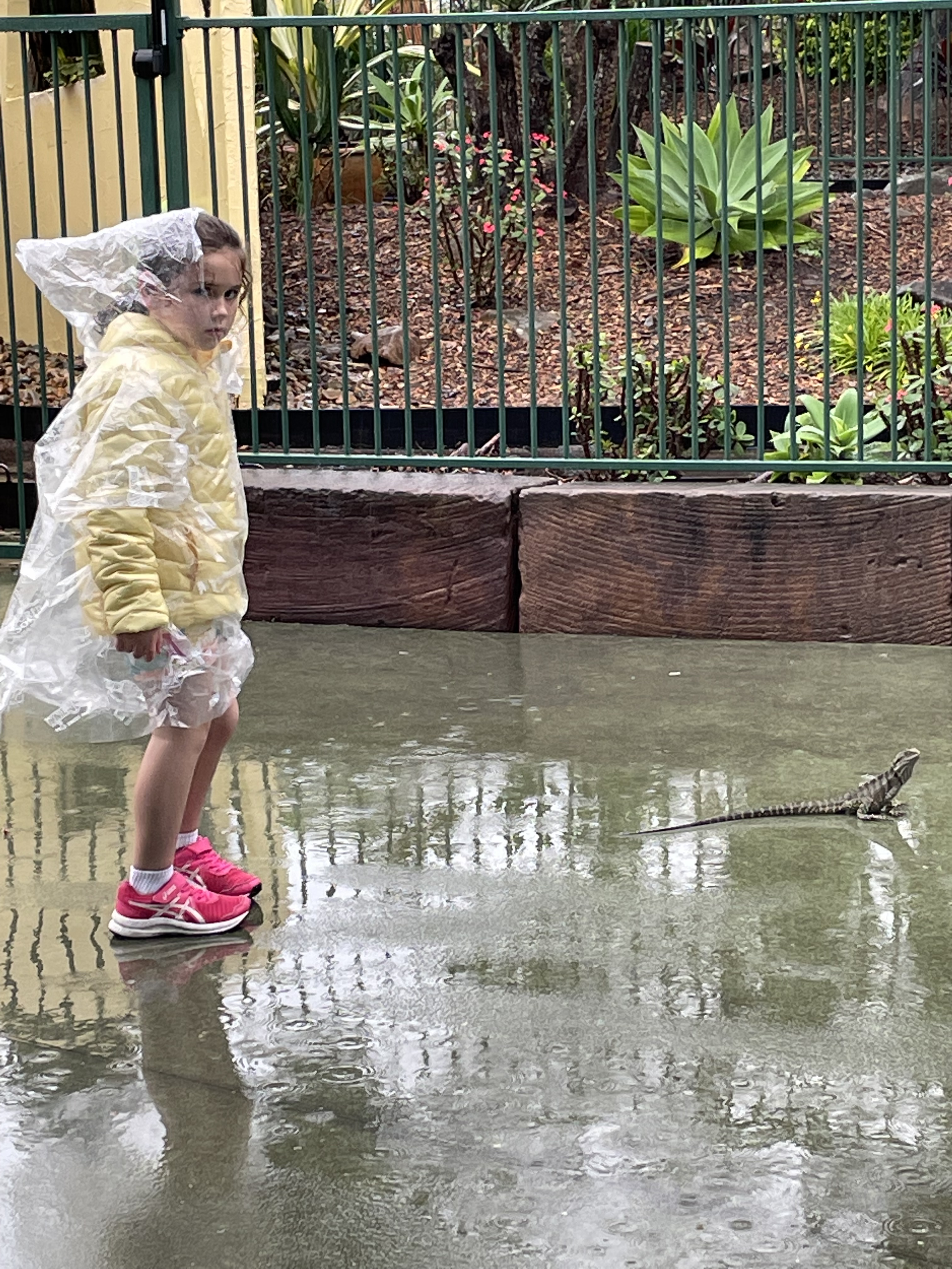 No rides were shut because of the rain, and the park was basically empty. a quick stop to buy ponchos for everyone and it was thrill rides galore. in a little over 3 hours, we got through more rides than we did the entire time on Thursday, a final count.
