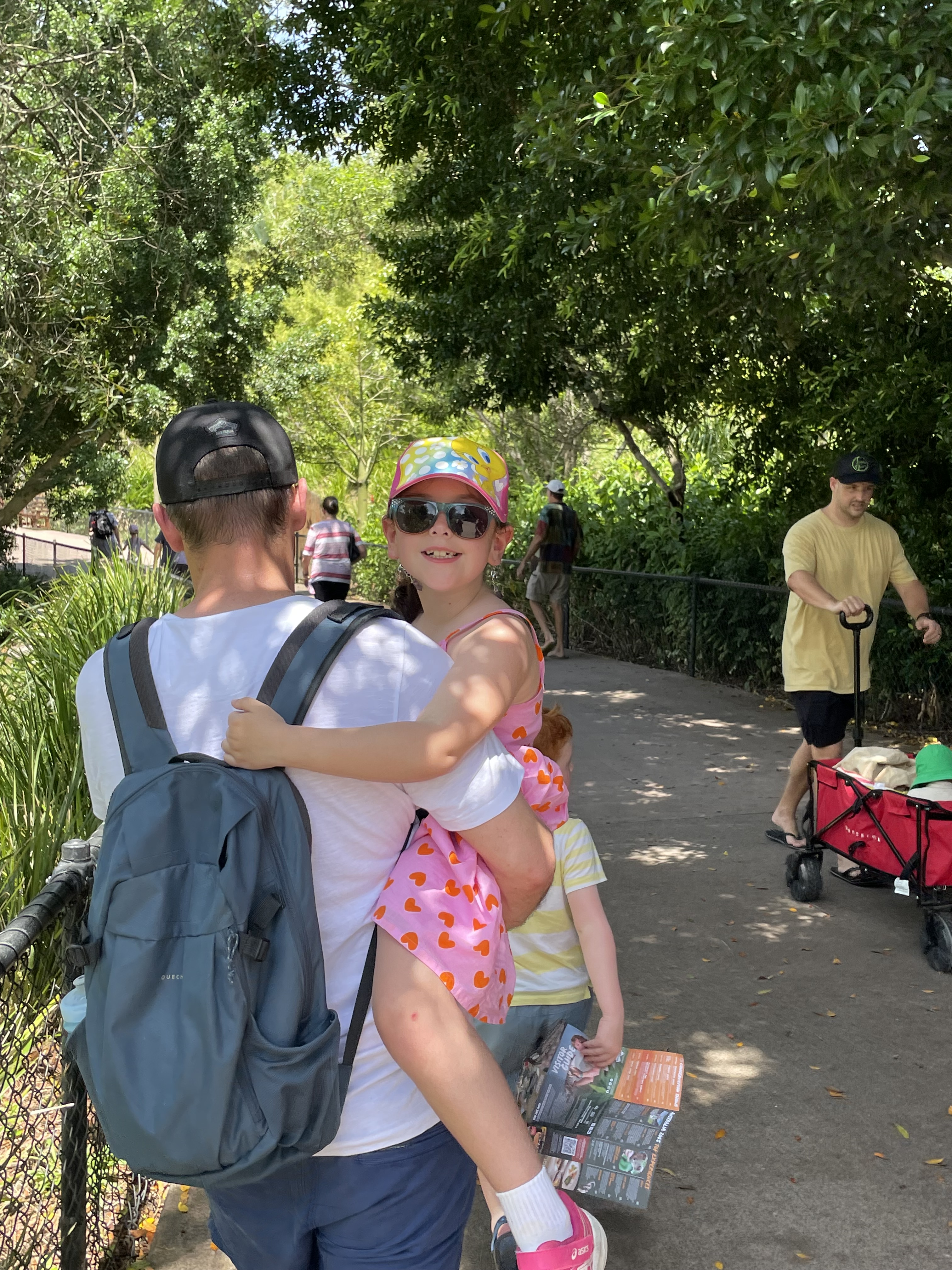 The shuttle bus that runs from the entrance to the extreme end of the park, ‘Africa’ only had 24 seats and only ran every 25min. This resulted in Dad carrying Kelsie the full Kilometer back to the Crocoseum. Mum and Dad both caved at this point and agreed to an indulgent lunch including icecreams.