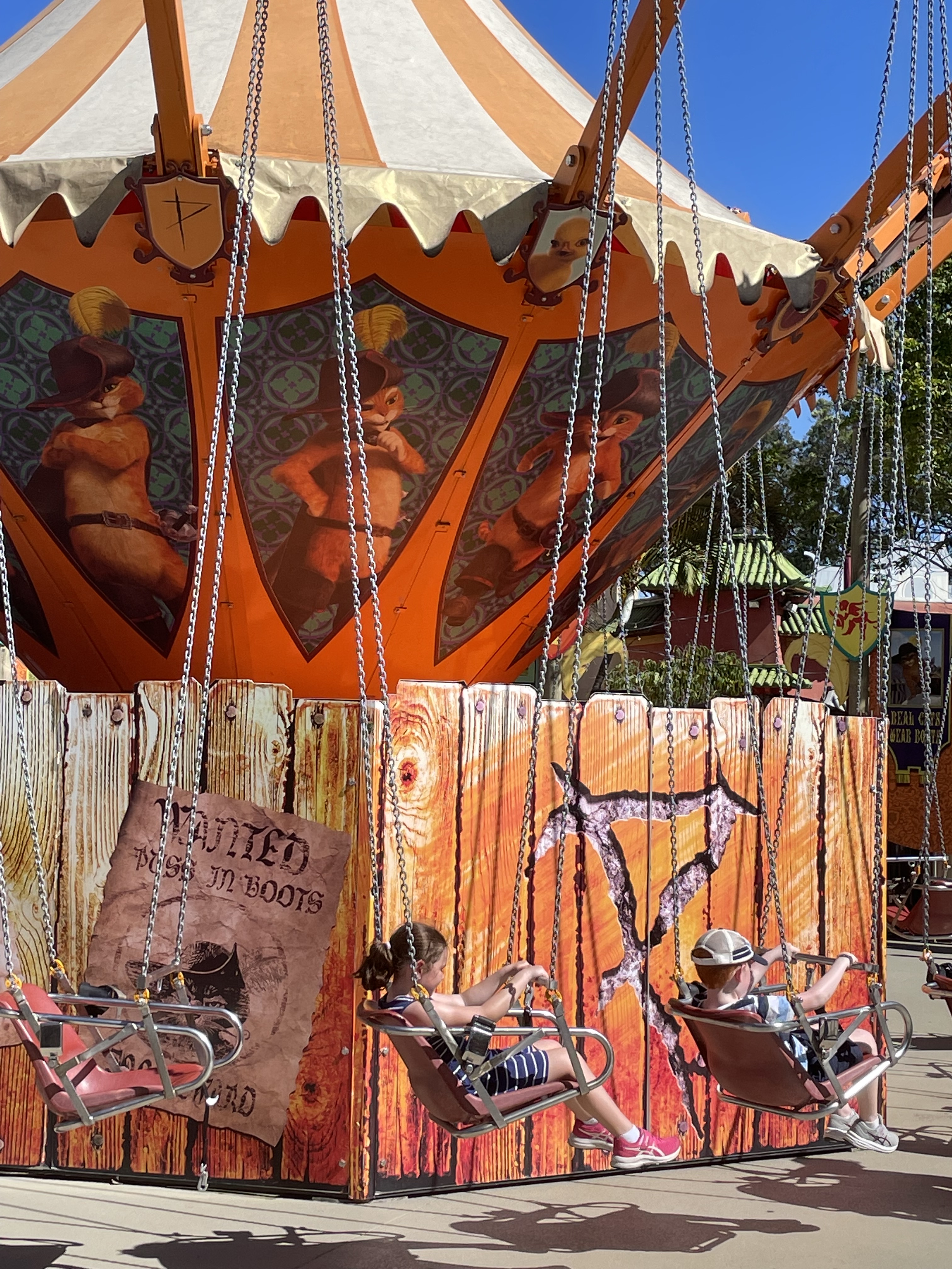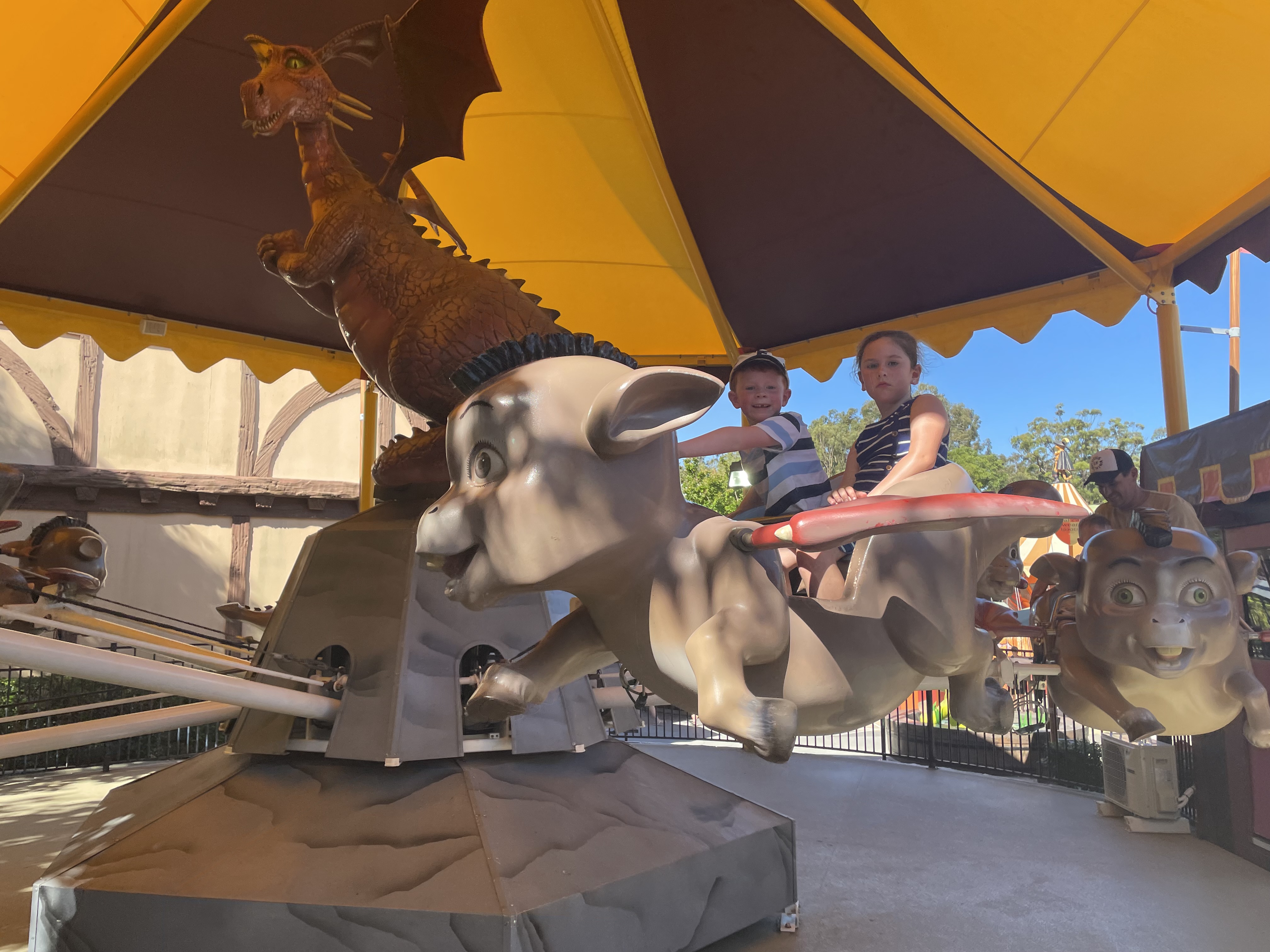 Ethan and Kelsie loved the Moto Coaster at dreamworld, and the Escape from Madagascar, they had to settle for mostly kids’ rides after that, and Kelsie was quite indignant at the thrill level of the Big Red Boat ride. Kelsie was also unhappy, and not afraid to show it when Ethan was in control of the elevation button on the Dronkey ride.