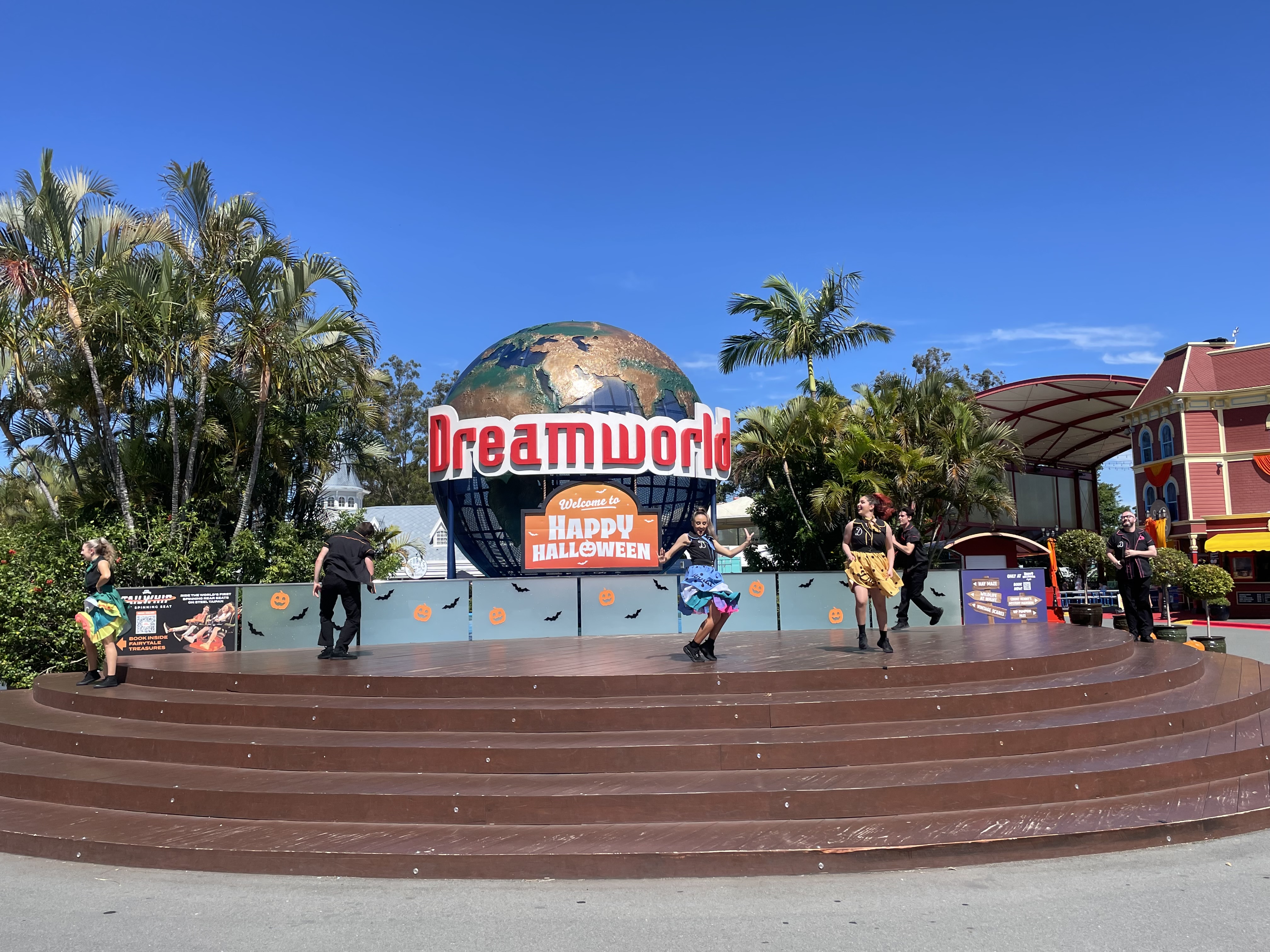 On our last full day at Turtle beach, we were headed to Dreamworld. Dreamworld opens an hour ad a half later than the Village Roadshow parks and closes an hour earlier. This may contribute to its lack of popularity. Despite the perfect weather, the park was almost empty. And we didn’t really have to queue for any rides, despite many kids’ rides running ‘alternating’.