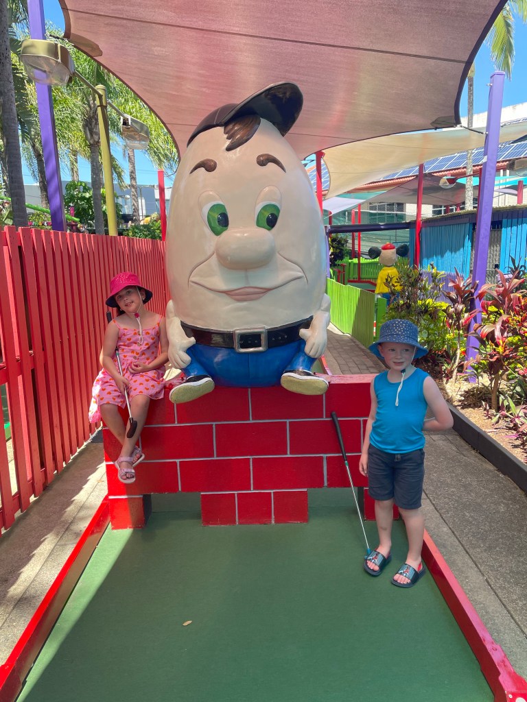 We weren’t going home just yet, a quick stop so Mum can have an ultrasound on her troublesome ankle. Two rounds of mini golf that left everyone dehydrated. Lunch at Pacific fair and to buy Ethan some new swimming goggles. His others never turned up.