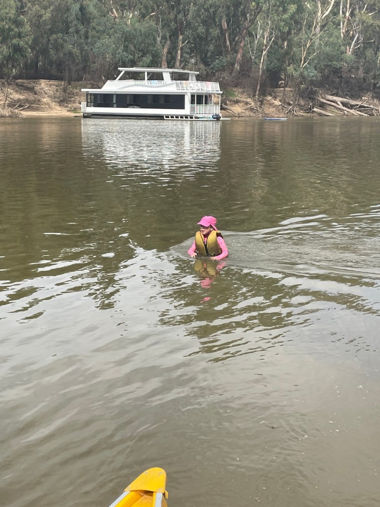 We got out in a canoe today. It was easier than last year, as Mummy has ditched her scooter, and they’ve replaced the rickety stairs with a ramp. Ethan was not happy with the rocking of the canoe and didn’t want to go near the river when we stopped for a paddle. Kelsie loved the river and would have swum beside the canoe if Daddy had let her.