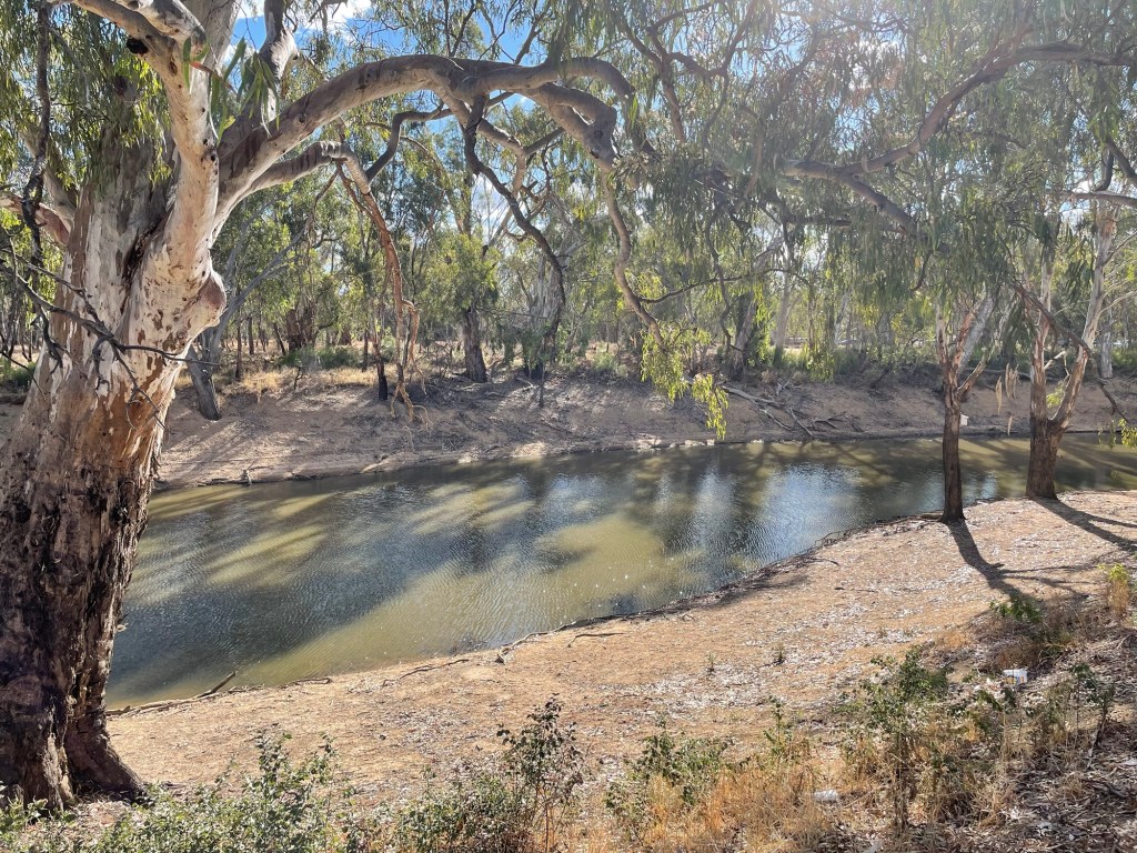Echuca had a triathlon event today. All of us were keen to see the swimmers and the bike riders. Waiting for the next wave(s) of swimmer to come down the river was an ordeal with regular “when are they starting” from Kelsie and Ethan.